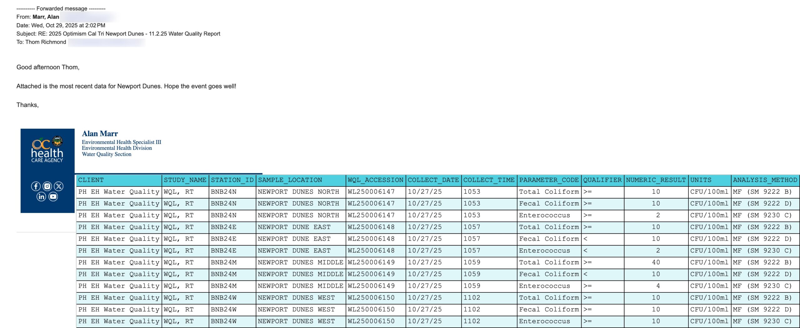Below are the water quality reports for each of the 2024 Cal Tri Events races.